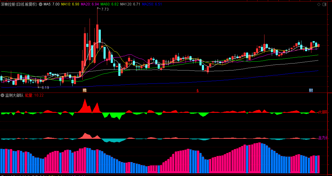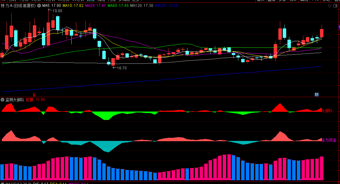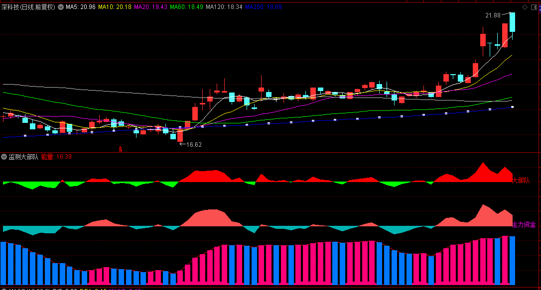 【监测大部队】副图指标 清晰展现主力资金进出状态与大部队动向 通过能量柱状图反映能量强弱