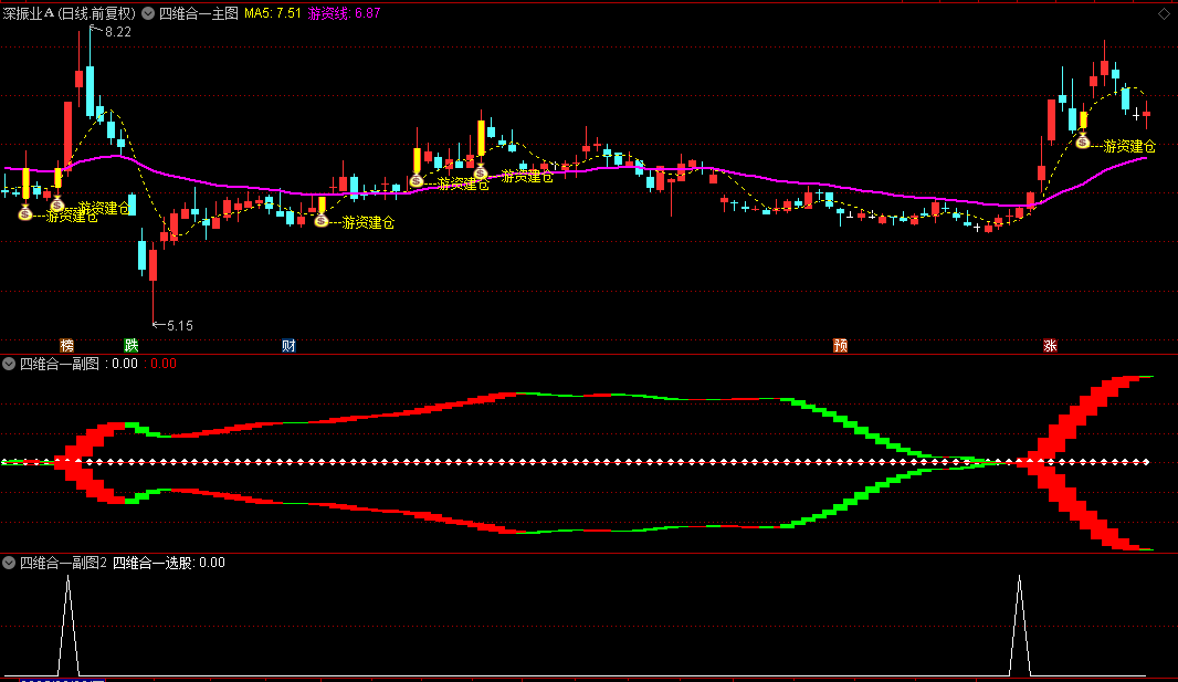 通过黄柱标记与“游资建仓”文字提示,识别游资与主力合力拉升的启动信号。当出现黄色标记且满足放量上涨条件时,预示短期强势行情可能启动。