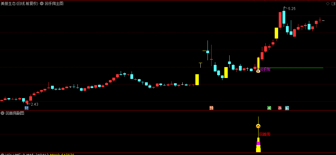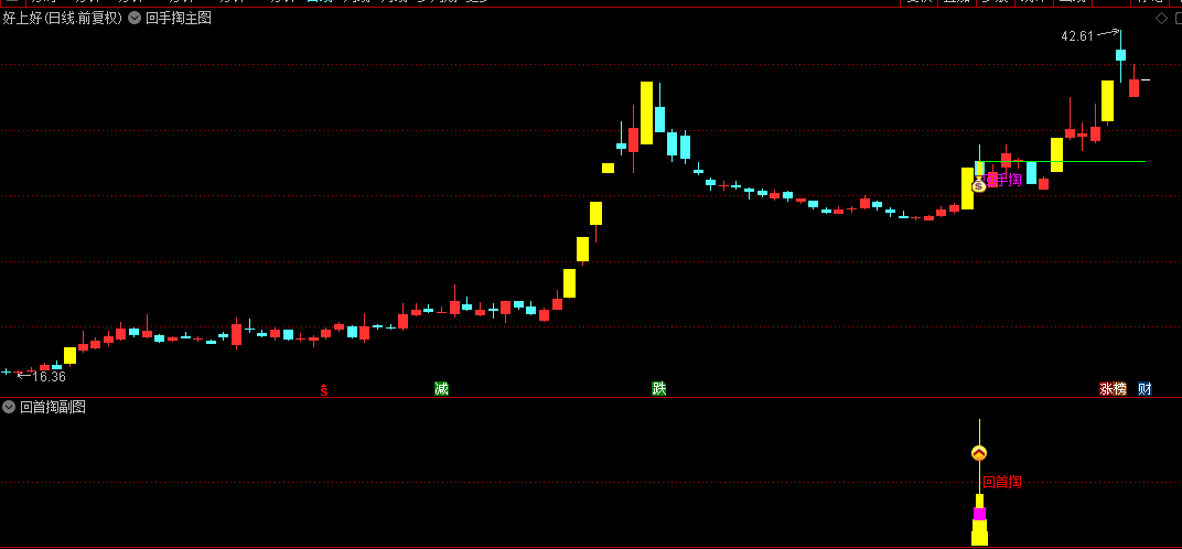 【回首掏】主图/副图/选股指标,突破平台横盘压力区,建议结合热点做进一步的删选,无未来!