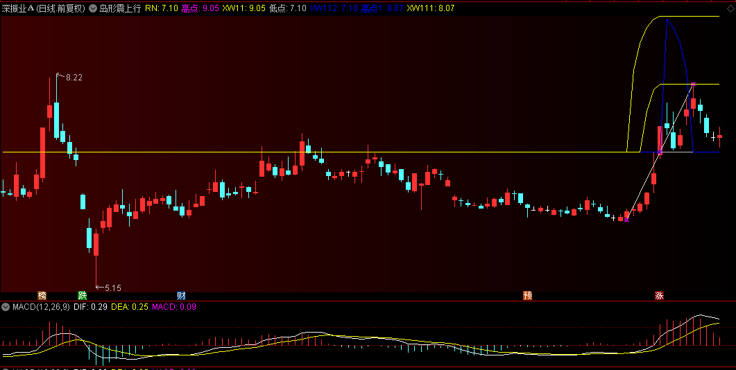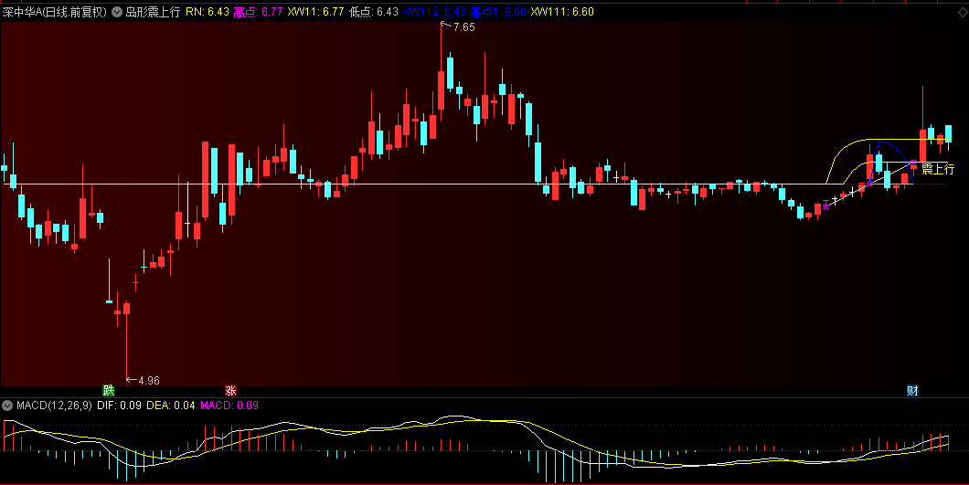 2. 向上岛形震上行:多出现于价格低位,暗示短期走势将转为上涨。