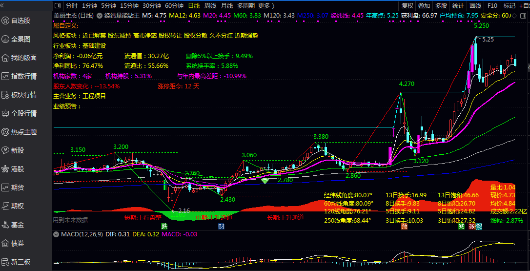 2.下方对股票趋势阶段进行了分类,短期(60天)+中期(120天)+长期(240-500),说明目前所属阶段