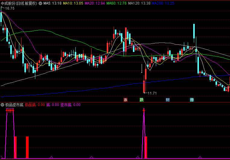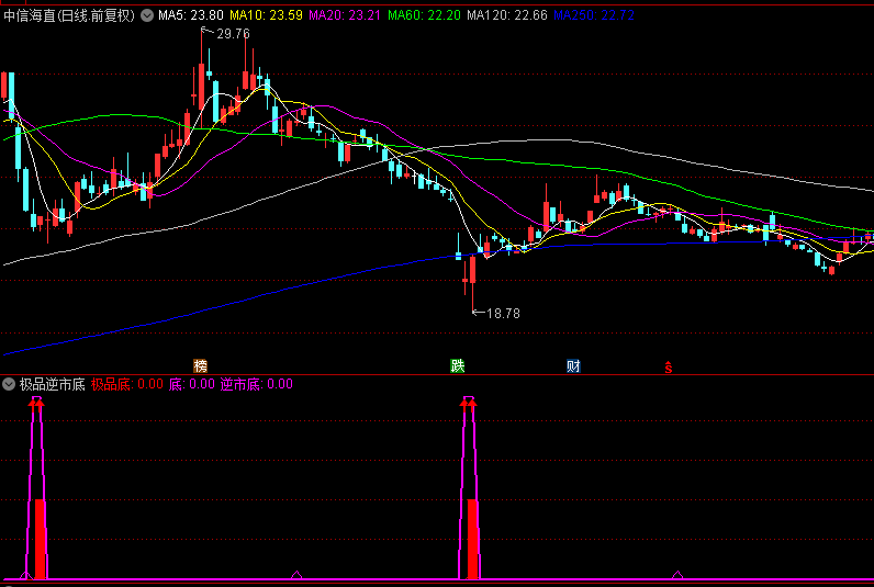 红色柱状图提示超卖后的反弹可能,粉色图标确认底部形态,逆市信号捕捉趋势反转。