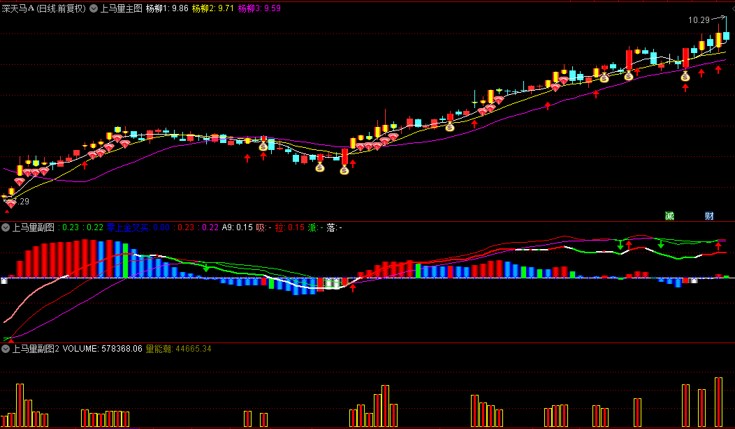 【上马量】主图/副图/选股指标 主图表示上涨动能持续累积 副图吸拉派落 量价与趋势的多功能指标