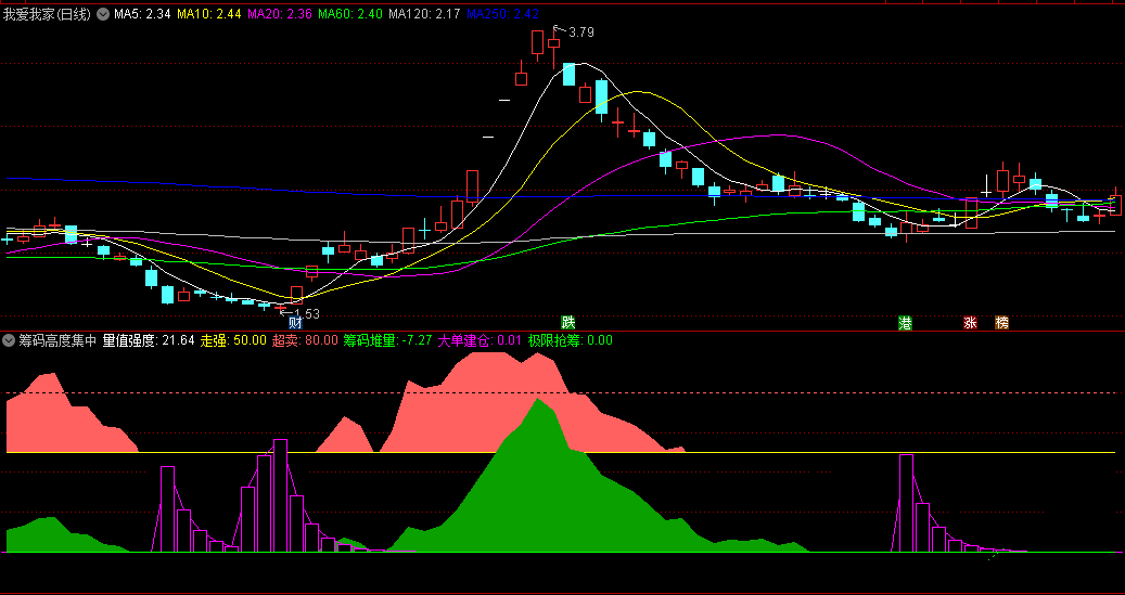 如:代表低于收盘价的获利筹码,如果此时股价在低点,并且技术指标出现金叉,此时又形成密集峰,并且平均成本很低,此时买入后市上涨概率大。