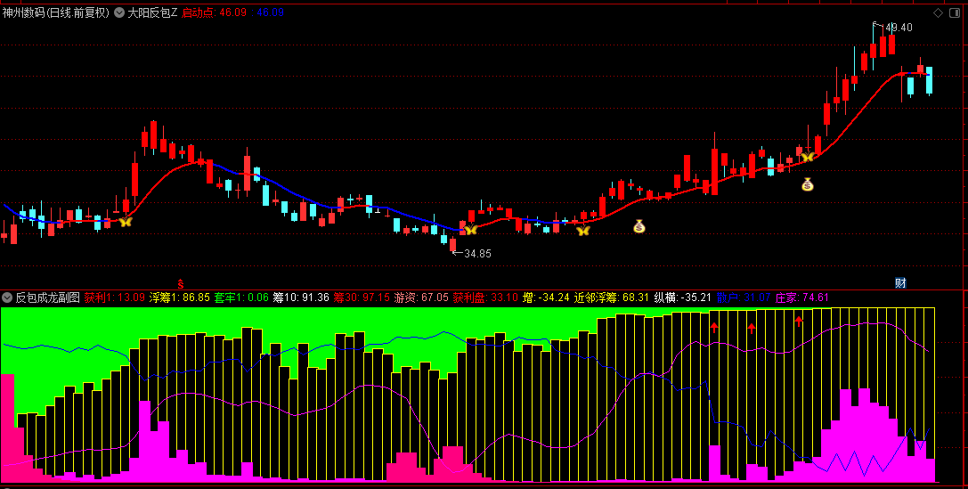 1.反包信号捕捉:通过价格与量能关系识别大阳线反包形态,提示短期多头动能爆发。