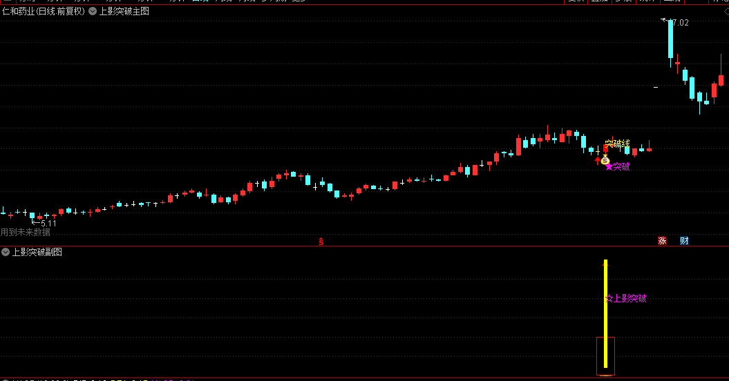 4.买卖策略买点:当主图出现“突破”信号,且副图出现“仙人指路”时,是精准的右侧买入时机。