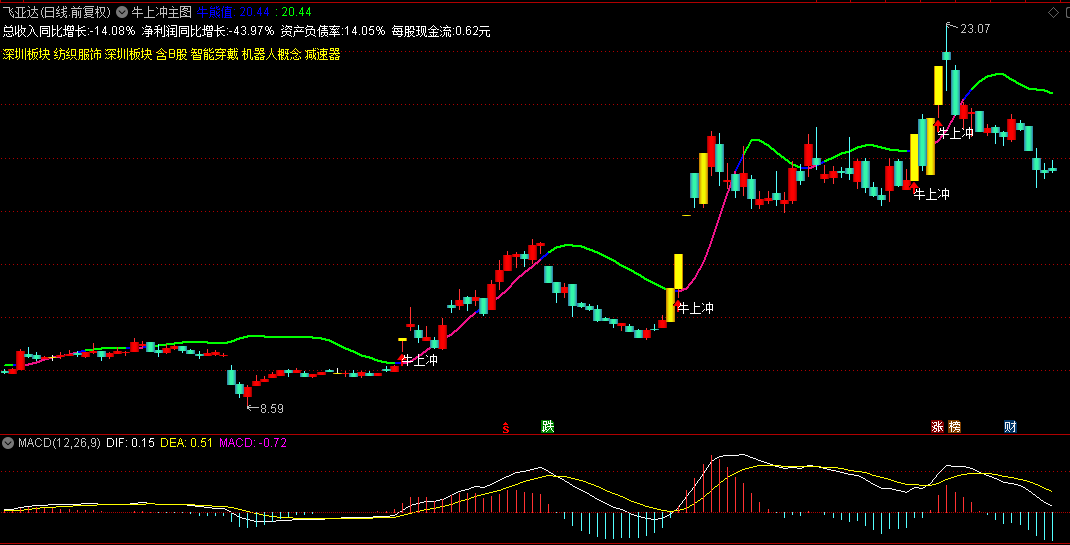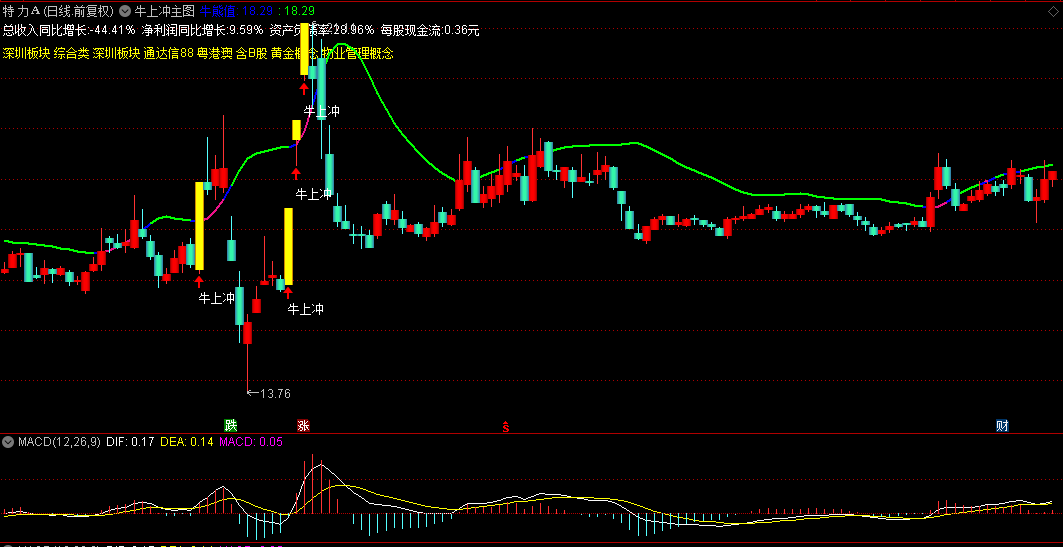 通达信【牛上冲】主图指标 界面直接显示核心财务数据及板块分类 指标侧重技术面动能捕捉