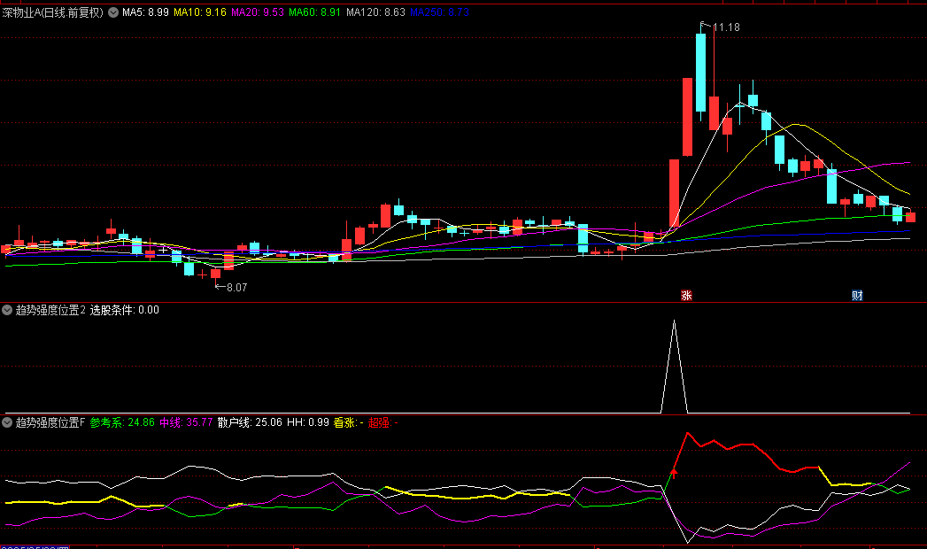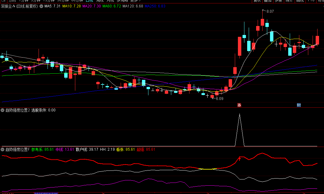 绝对位置评估(参考系、散户线):判断股价相对于长期高点和低点的位置,反映趋势的强度和空间。