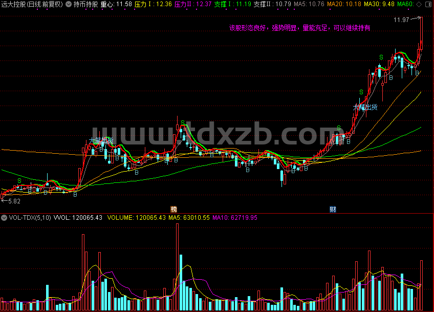 ,'该股形态良好,强势明显,量能充足,可以继续持有'),COLORFF00FF;