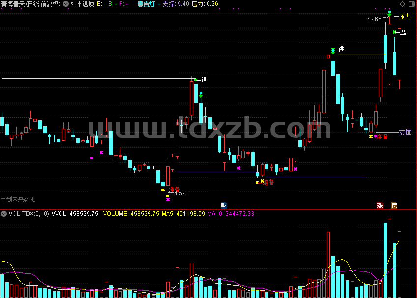 DRAWTEXT(CROSS(S,卖1),S,'←逃'),COLORWHITE,LINETHICK1;