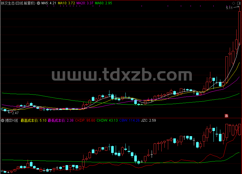 CKDP:(CLOSE-COST(0.01))/(COST(99.989998)-COST(0.01))*100,COLORRED;