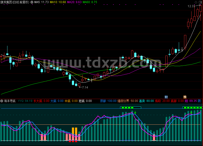 阳: EMA((CLOSE-VAR1)/(VAR2-VAR1)*100,4),COLORMAGENTA,LINETHICK2;