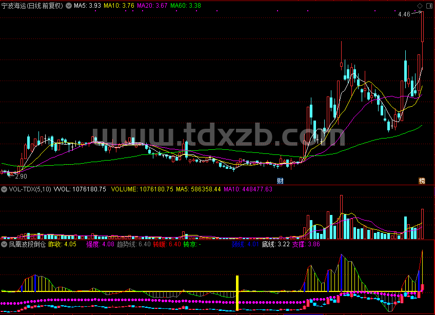 强度: EMA(MAV,9)*0.8+1,POINTDOT,LINETHICK5,COLORFF00FF;