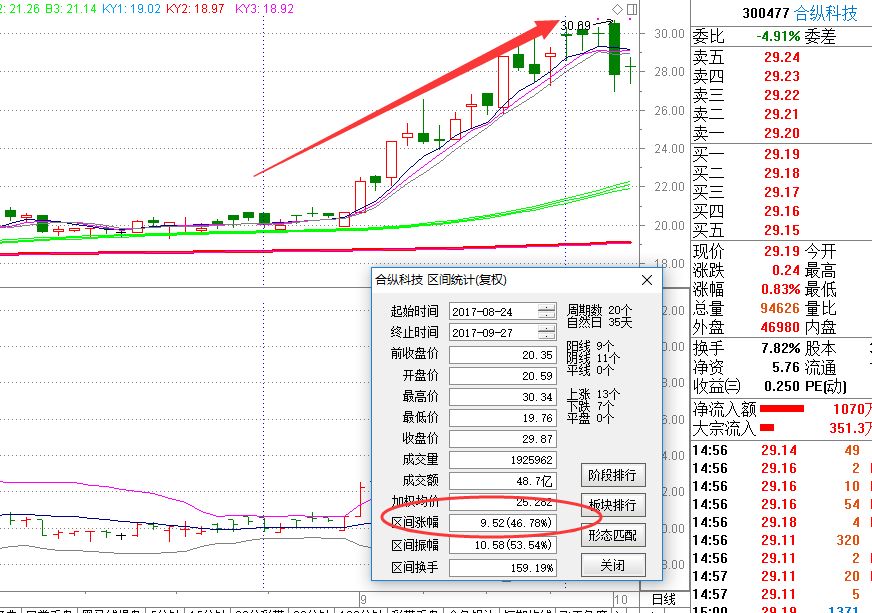 2017年8月底,我从南京回来的那几天,我在我们群里反复提合纵科技这个股票,其实也属于典型的布林轨道压缩,后期一旦迸发,往往都有20-30%的利润!
