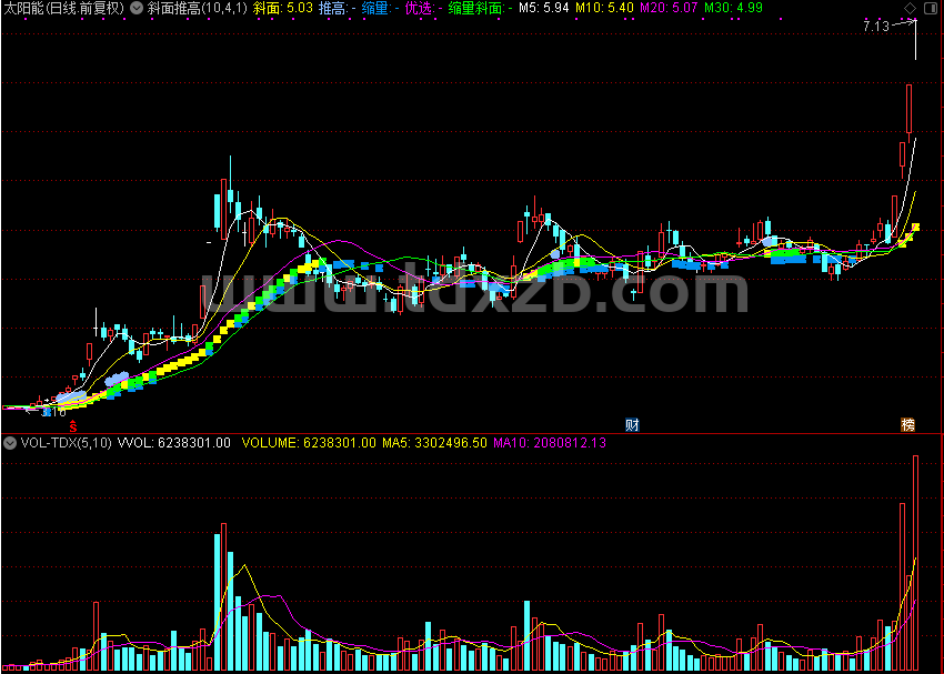 推高:IF(TGE=1,MZH*1.024,DRAWNULL),COLORFFBB88,LINETHICK4,CIRCLEDOT;