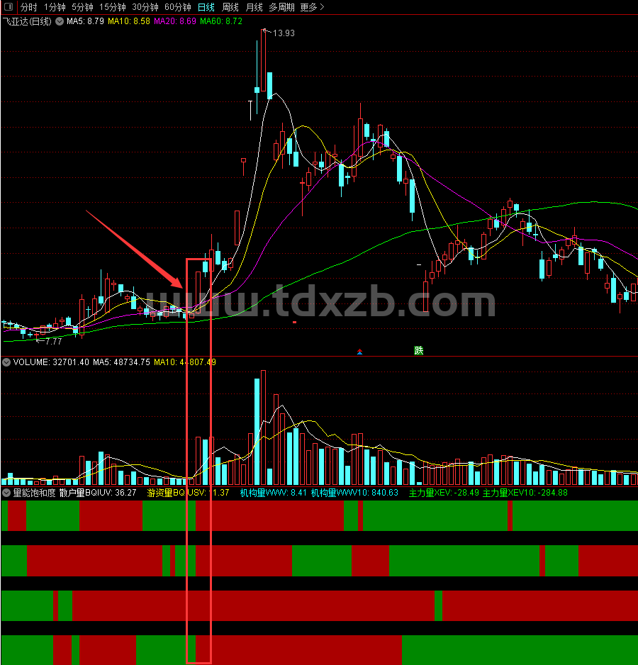第四条主力量,红色表示有主力量,绿色表示无主力量;