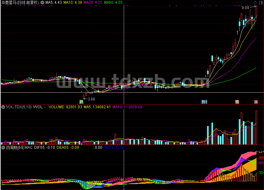 MACD周:=(DIF55-DEA55)*2, COLORSTICK;