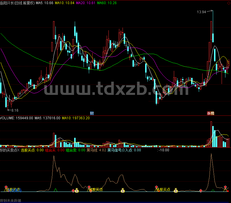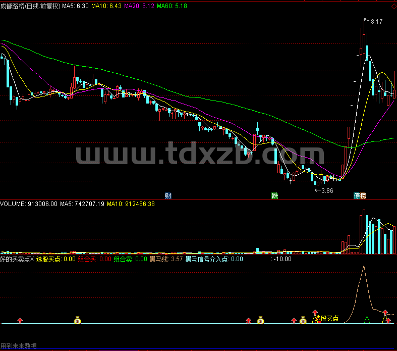 DRAWTEXT(黑马信号介入点>0,4.5,'●我的黑马介入点'), , COLORRED;
