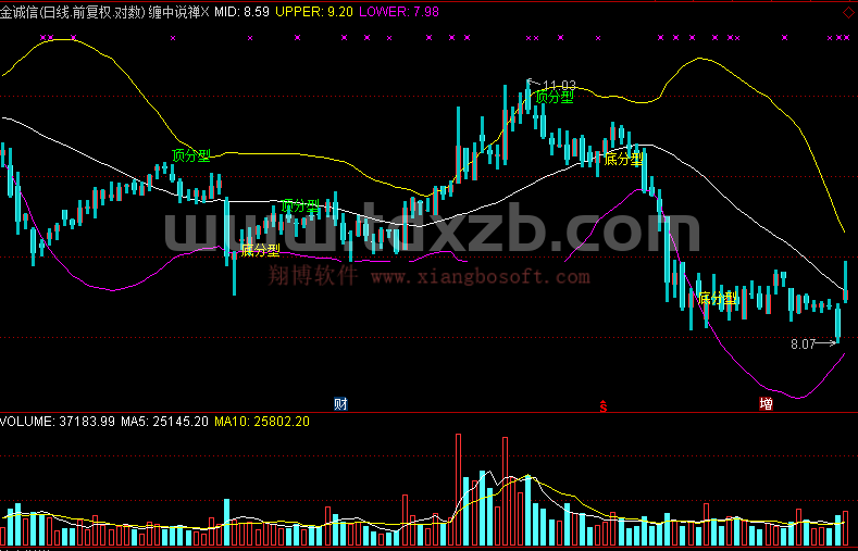 {笔顶分型 选股 预警 确保向上笔成立后的顶分型}