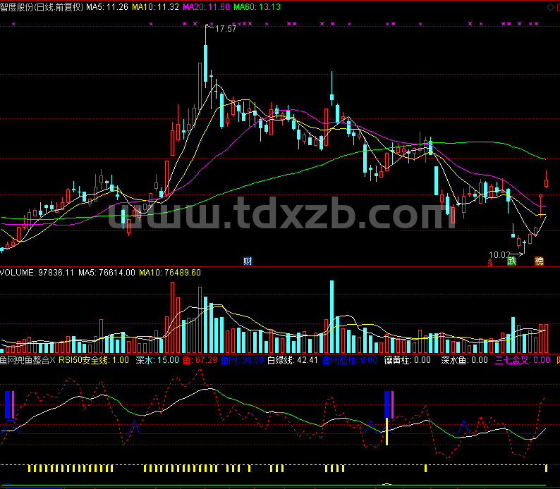 鱼网:IF((CROSS(RSI2,RSI4) OR CROSS(RSI2,A3) AND A3<好线 AND RSI1<平线),48,38),COLORBLUE,LINETHICK1;