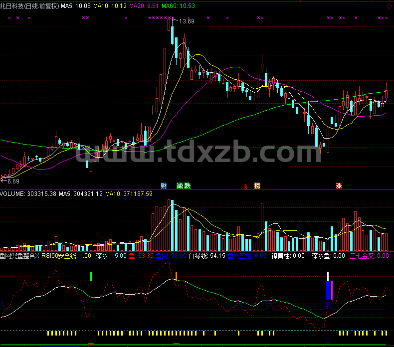 白绿线:SMA(鱼,7,1),LINETHICK1,COLORWHITE;