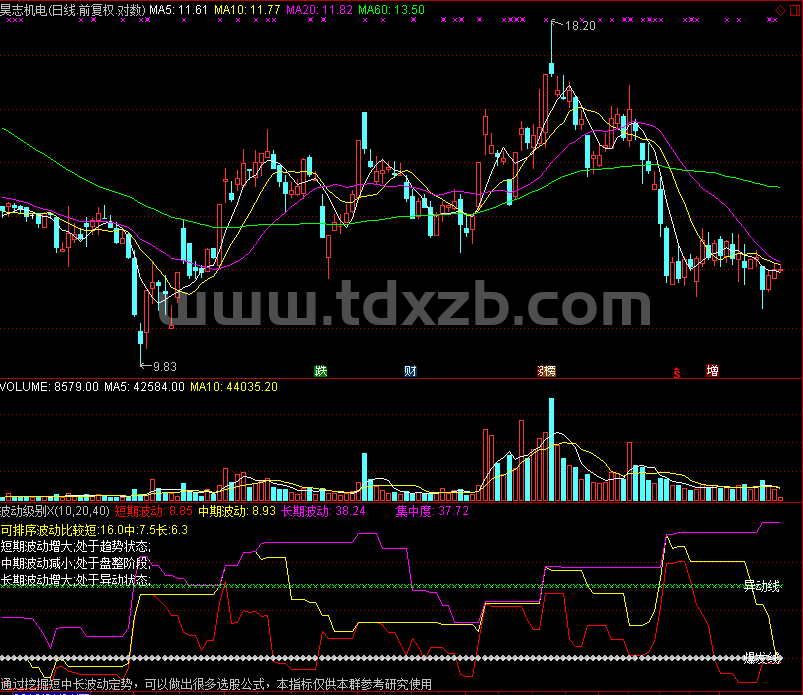 DRAWTEXT_FIX(1,0,1,0,'通过挖掘短中长波动定势,可以做出很多选股公式,本指标仅供本群参考研究使用'),COLORLIGRAY;