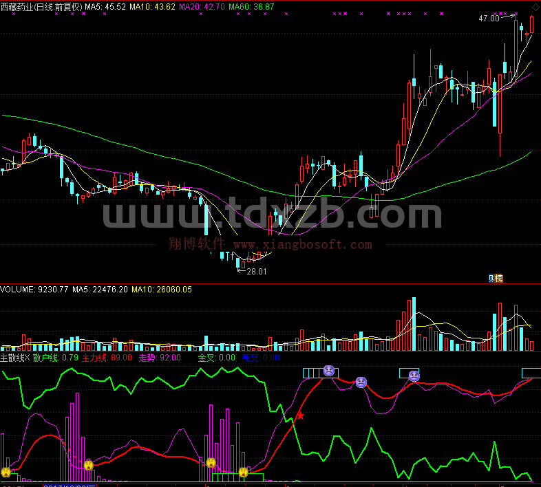 主力线:EMA(J,6),COLORRED,LINETHICK2;