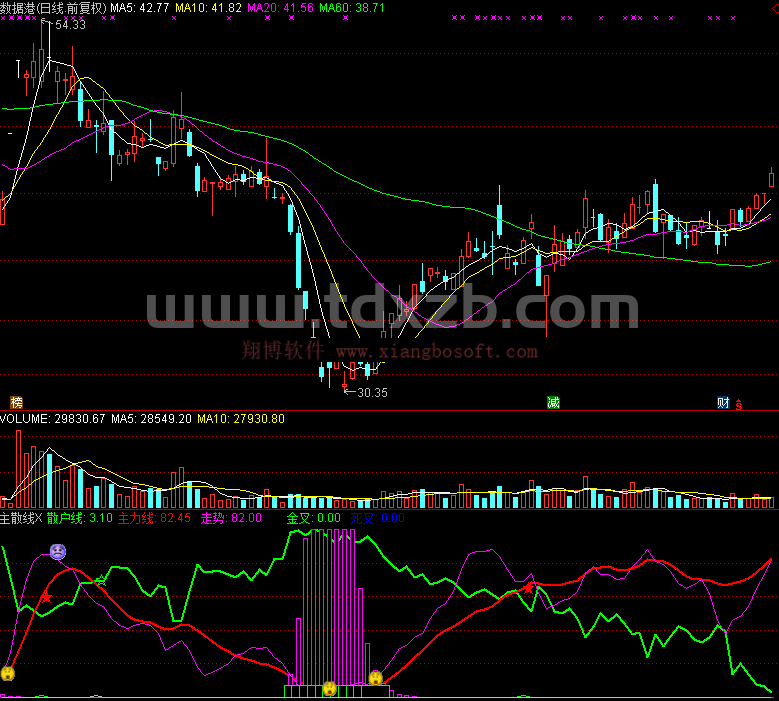 金叉: CROSS(主力线,散户线);