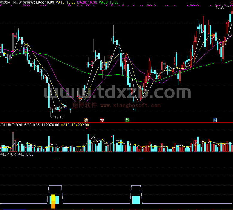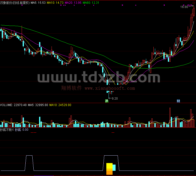 抄底:IF(股价趋势<P1,20,0),COLORFFCCCC;