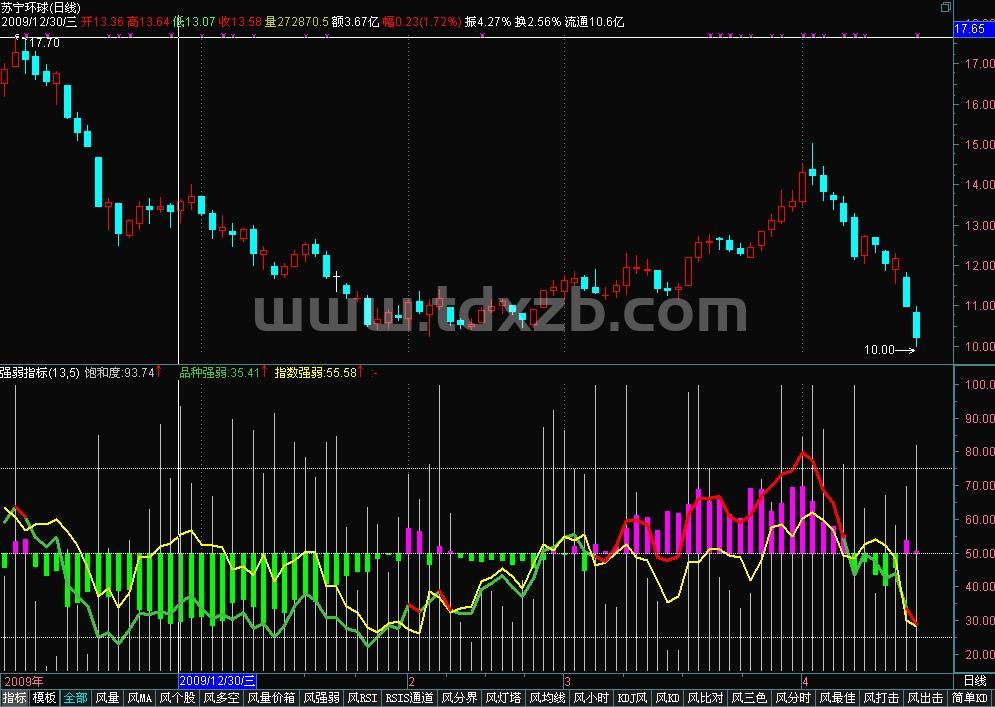 STICKLINE(相对强弱度<=50,50,相对强弱度,1,0),COLORGREEN;