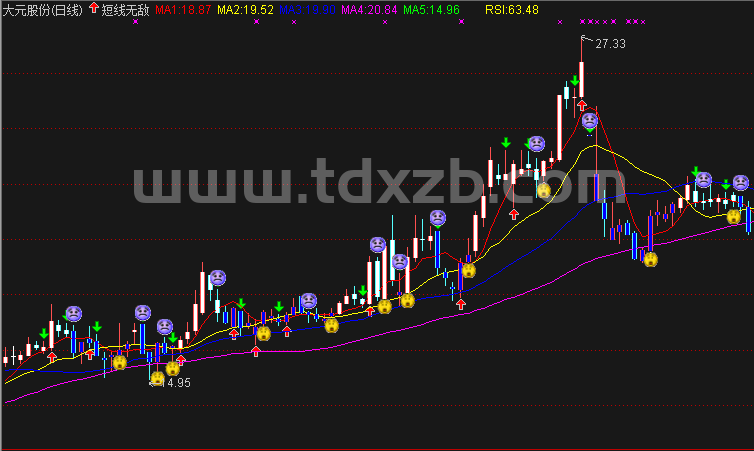 DRAWTEXT(A<-LG AND LF=0,L*0.96,'下跌过急'),COLORYELLOW;