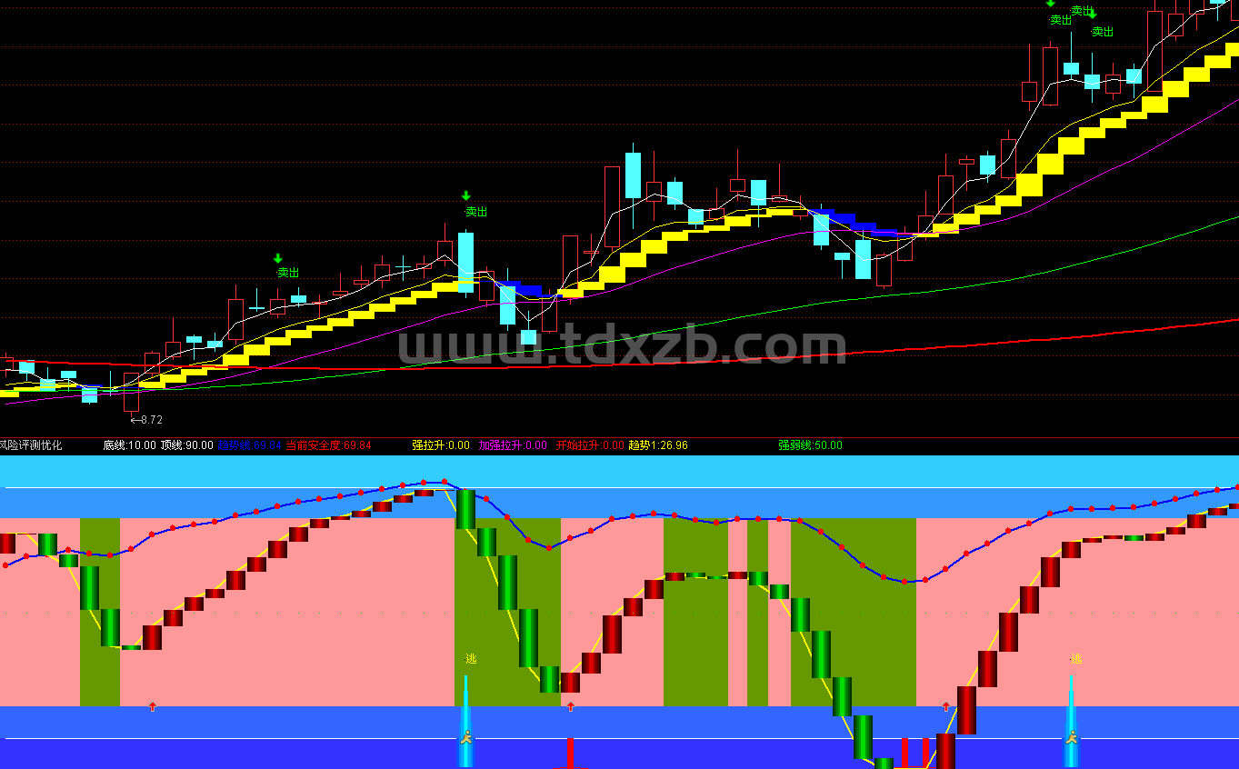 趋势:=100-EMA(0.191*REF(VAR4,1)+0.809*VAR4,1);
