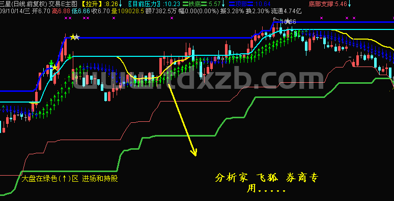 DRAWTEXT(CROSS(〓铁底〓,底部支撑),〓铁底〓-0.2,'大盘在绿色(↑)区 进场和持股'),COLORYELLOW ;