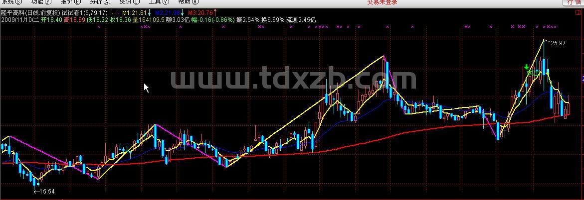OPEN>REF(CLOSE,1),1,0),LOW,'●买进'), COLORRED;