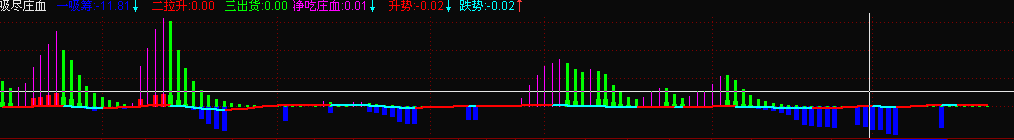 一吸筹:IF(现价<REF(现价,1) AND 现价<0,现价,0)COLORBLUE,NODRAW;