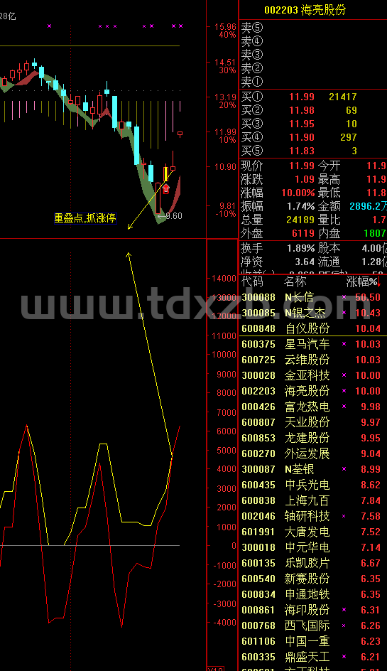 通达信源码:CN1:=HHV(V,5);CN2:=O>C;CN02:=C>O;CN03:=C=O;