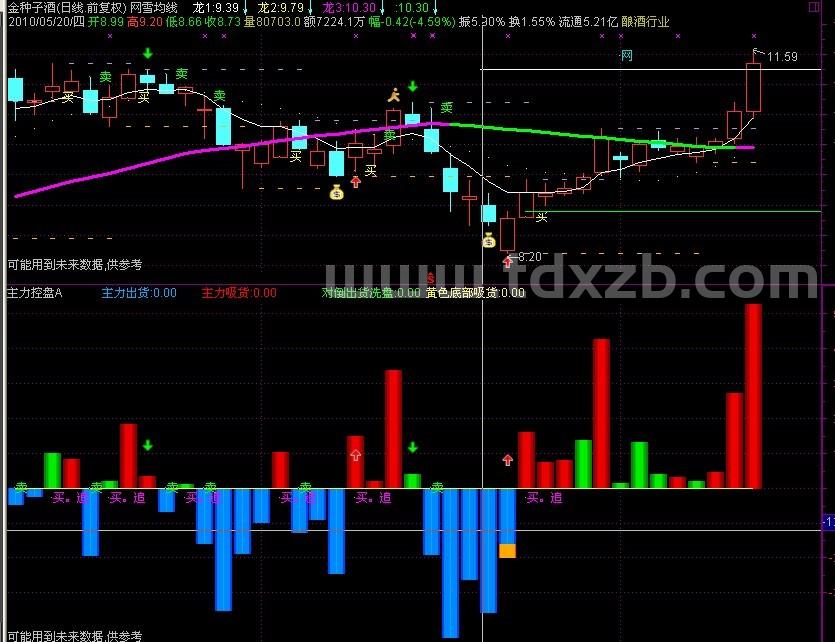 DRAWTEXT(CROSS(0,控盘),0-0,'卖'),COLORGREEN;