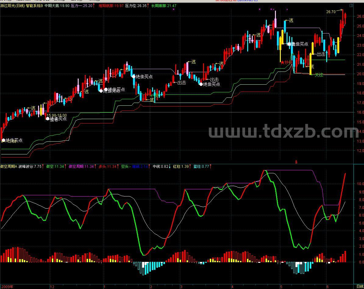 压力位:IF(CROSS(D24,D),HIGH,L),POINTDOT,COLORFFFFFF;