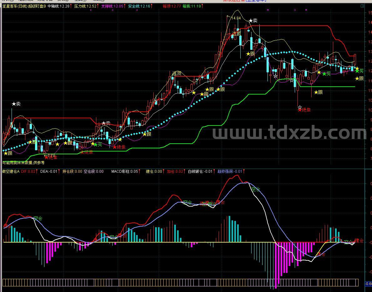 DRAWTEXT(CROSS(DEA,DIF),DIF+0,'空仓'),COLORGREEN;