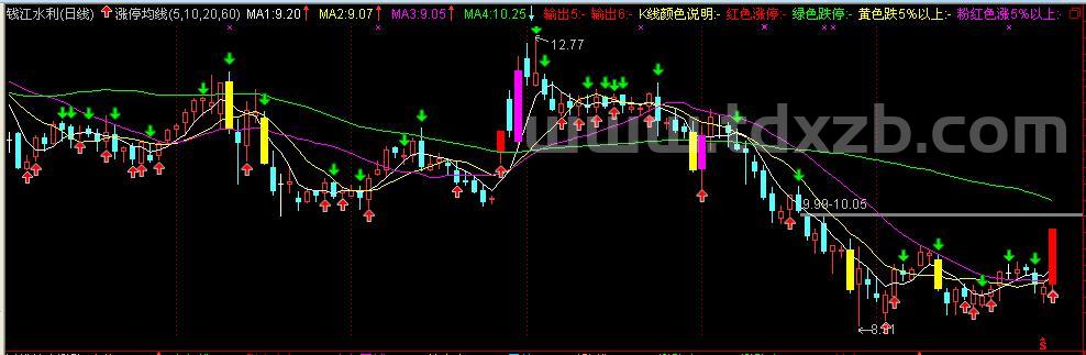 粉红色涨5%以上:IF(MA1>200,C,DRAWNULL),COLORMAGENTA,LINETHICK1;