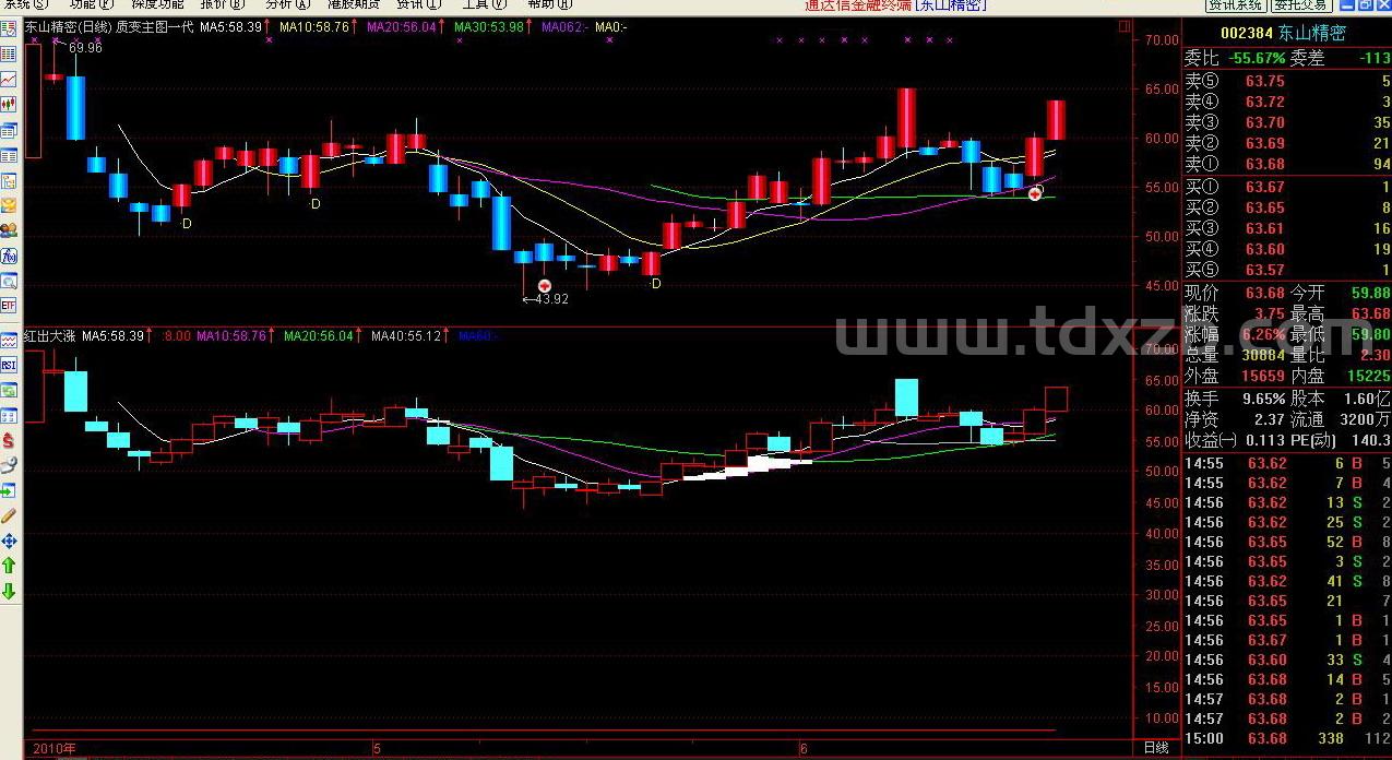 STICKLINE(MA5>=MA20 AND MA20>=MA10,MA10,MA20,4,0),COLORWHITE;