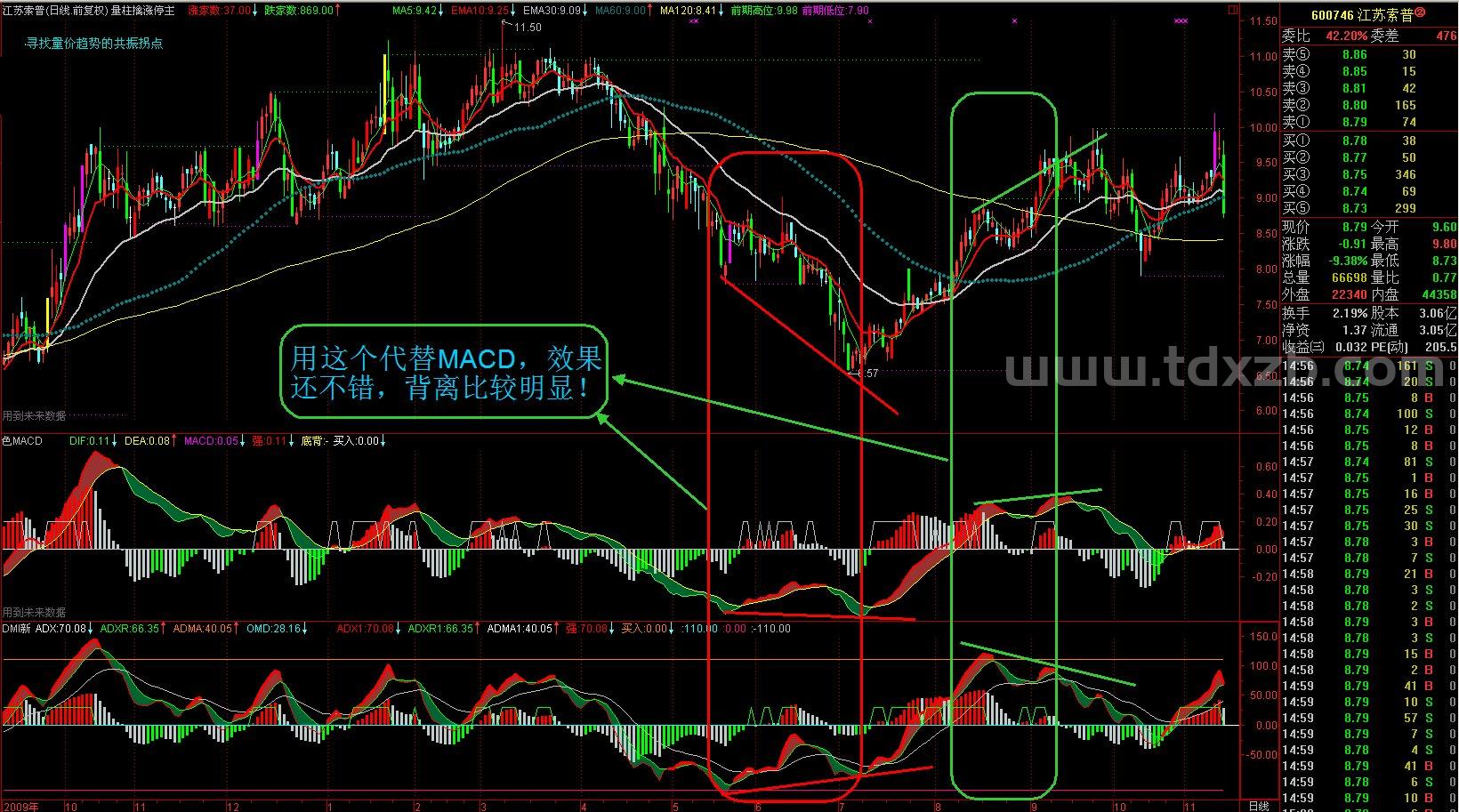 强:IF(ADX1>=ADXR1,ADX1,DRAWNULL),COLORRED,LINETHICK3;