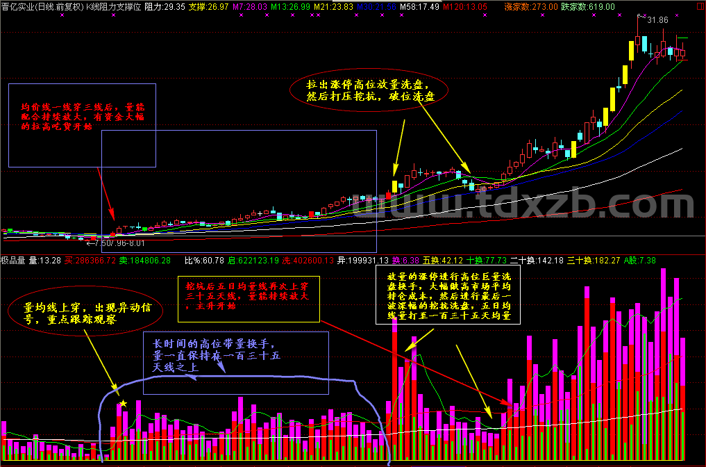 买:IF(CLOSE>OPEN,VAR1*(HIGH-LOW),IF(CLOSE<OPEN,VAR1*((HIGH-OPEN)+(CLOSE-LOW)),VOL/2)),COLORRED,POINTDOT;