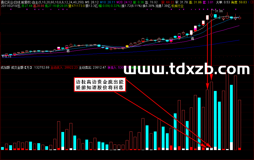 STICKLINE(净流入>0,0,净流入,2.5,0),COLORRED;