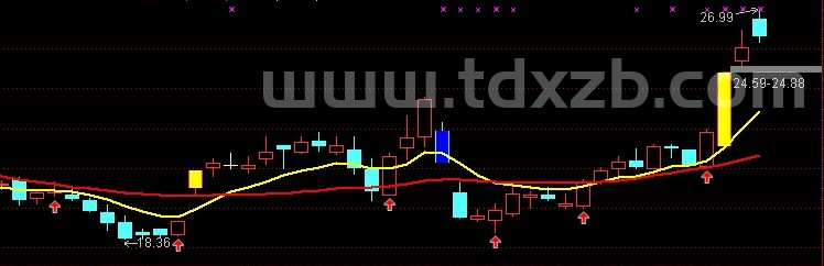中轴线:(MA(CLOSE,3)+MA(CLOSE,6)+MA(CLOSE,12)+MA(CLOSE,24))/4,LINETHICK2,COLORYELLOW;