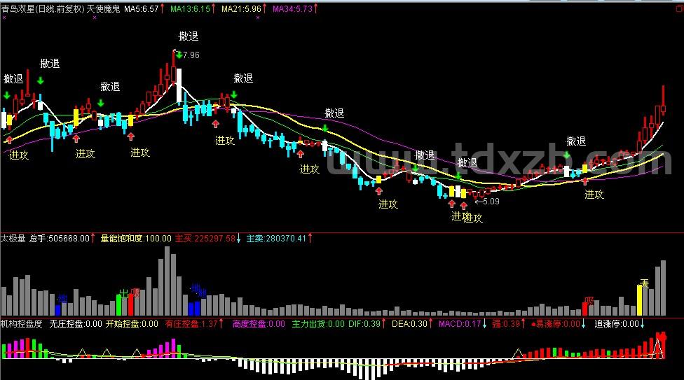 通达信副图能看主动买盘卖盘量能饱和度的太极量源码