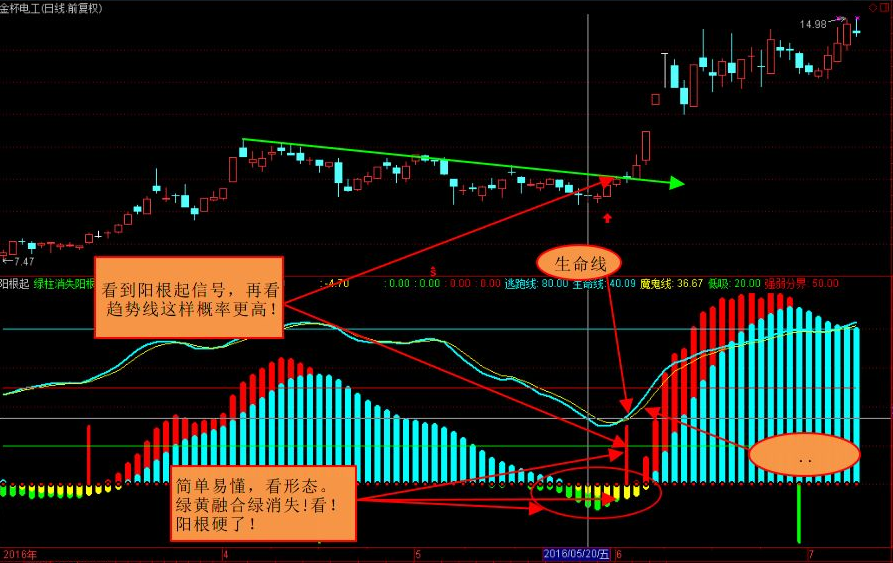 我是高手金牌选股指标阳根起看到阳起信号在看趋势线这样成功率高