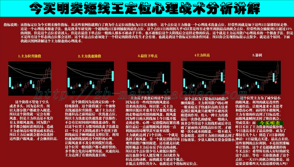 指标使用策略:该指标是针对2日行情而定位的操作策略,所以坚持预警后买入,第二天逢高卖出的原则!该点位虽然经常是主力拉涨途中的洗盘点,但是该指标不是有效定位的中长线操作点,所以坚持今买明卖的原则!该指标的策略就是以短取胜,每天5%。