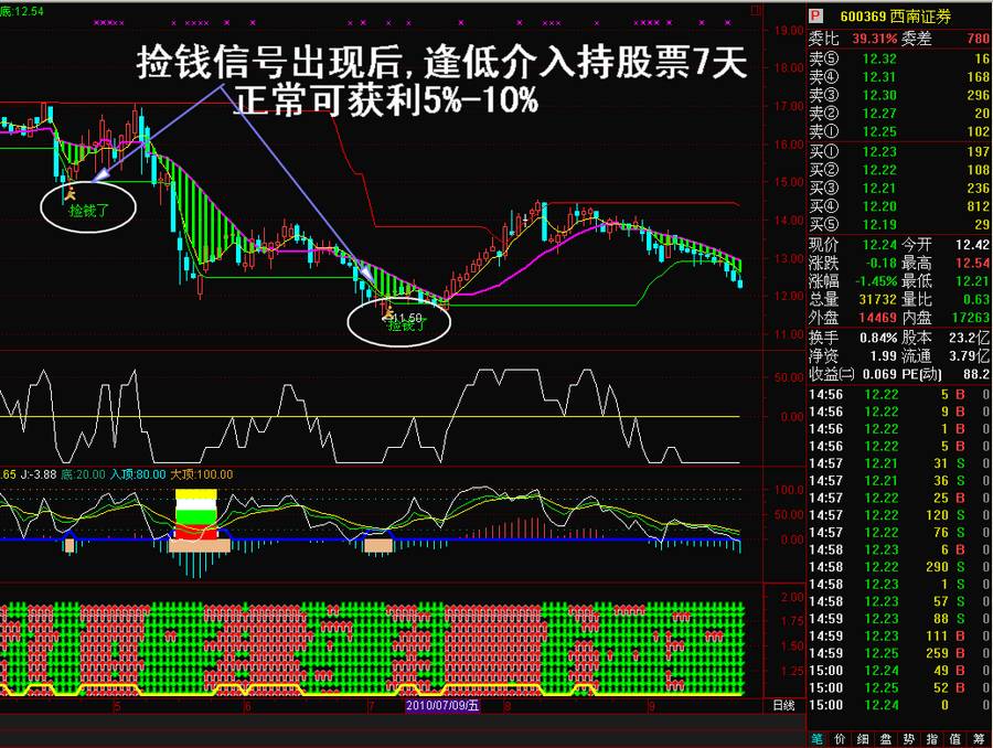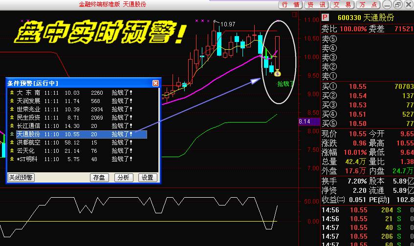 本软件盘中实时预警(捡钱了和抢钱了信号).无论大盘是涨是跌,每天都有几只强势股,本软件的特点是总能抓住其中的一只,您只需要对趋势行情做适当的分析判断,便可以挑选出牛股与黑马了!