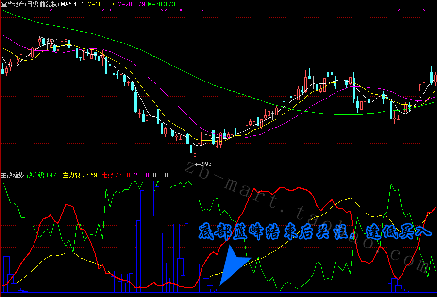 通达信精品指标公式/五里操盘/支持选股预警/金底谷底反弹牛三金